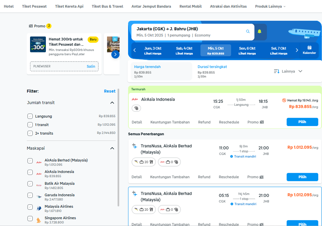 Tiket pesawat Jakarta ke Johor Bahru |