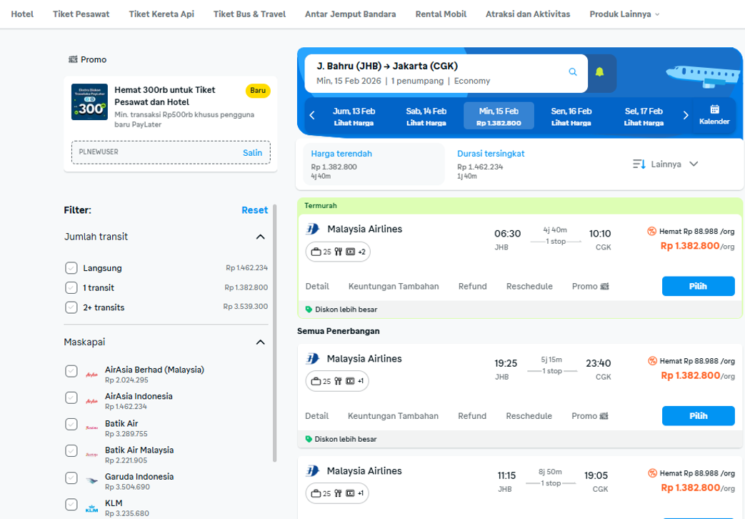 Tiket Pesawat Johor Bahru ke Jakarta |